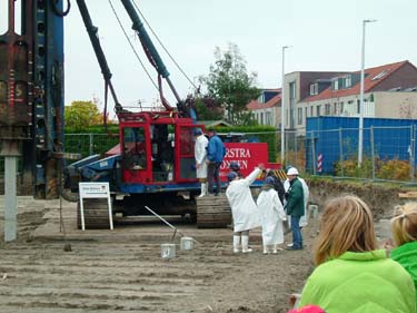 De eerste paal wordt door apotheker Wibo Stoopman geslagen.