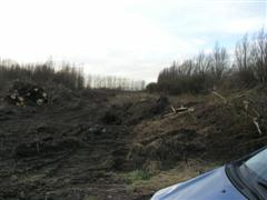 En dan lijkt het raar om te beginnen met het weghalen van groen, maar om het gebied bouwrijp te maken moeten er eerst bomen gekapt worden. Dat was altijd al de bedoeling, dit was 'productiebos'.