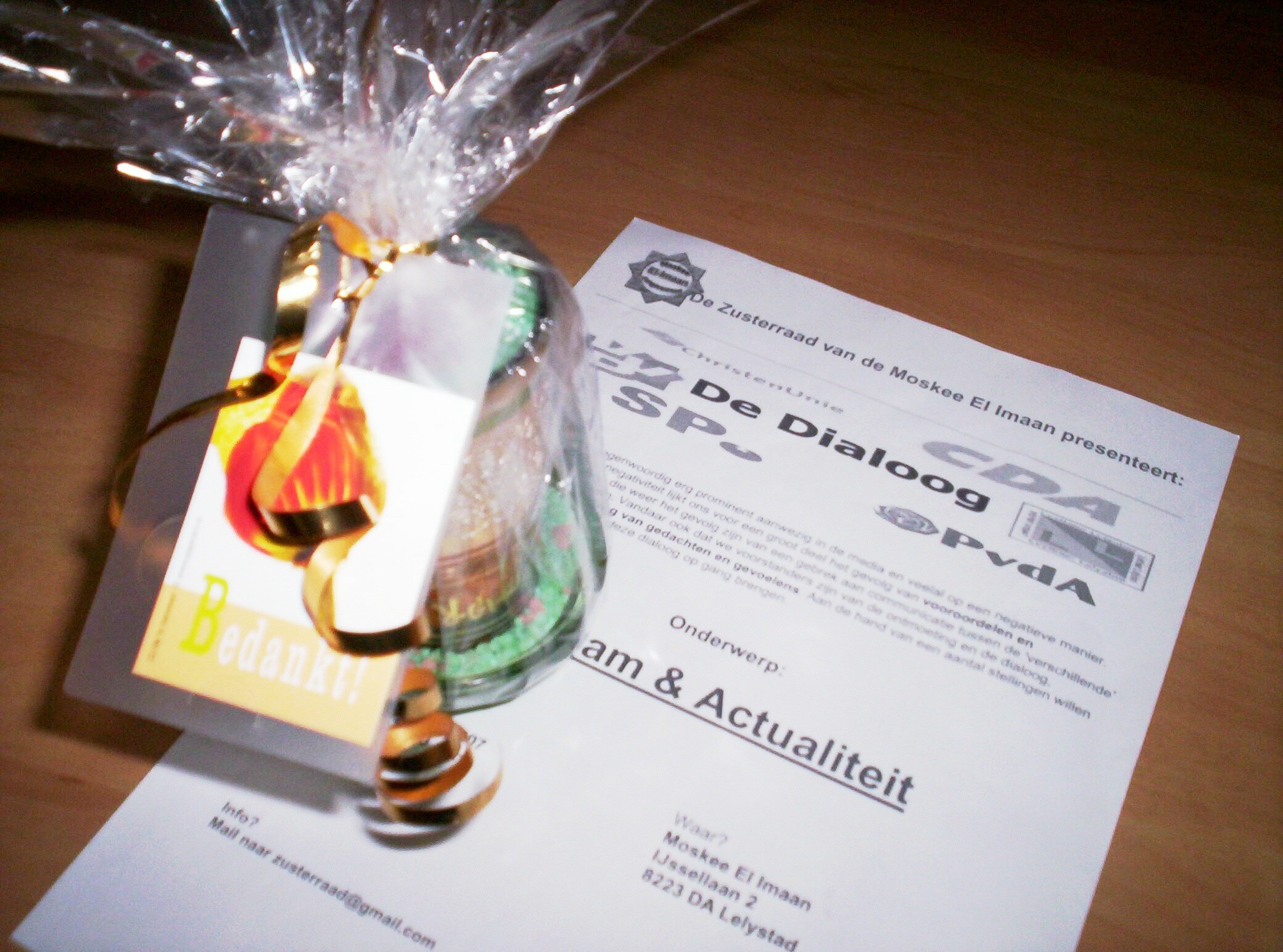 Het begon om ongeveer 19.00 uur, verschillende vertegenwoordigers van de lokale politiek aanwezig, dhr Van Erk van de VVD, Siepel: CU, Tetteroo: CDA, mevr Linde: SP, Erica: Leefbaar Lelystad, El Mhassani: PvdA en dhr Jounes; woordvoerder van de Moskee El Imaan.