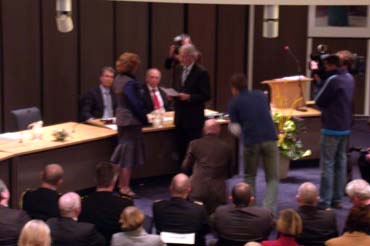 Woensdagavond 1 februari jl werd Margreet Horselenberg (PvdA) geïnstalleerd als nieuwe burgemeester van Lelystad. In een volle raadszaal nam Commissaris van de Koningin van Flevoland Michel Jager de eed af en loco-burgemeester Tjeerd van der Zwan overhandigde haar de ambtsketen. Naar goed gebruik kreeg zij als geschenk een fiets om Lelystad ook vanuit dit oogpunt te verkennen. lees meer